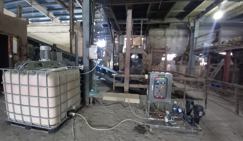 Hệ thống phun cấy vi sinh vật hữu ích lên sản phẩmphân bón trong dây chuyền sản xuất của Supe Lâm Thao.